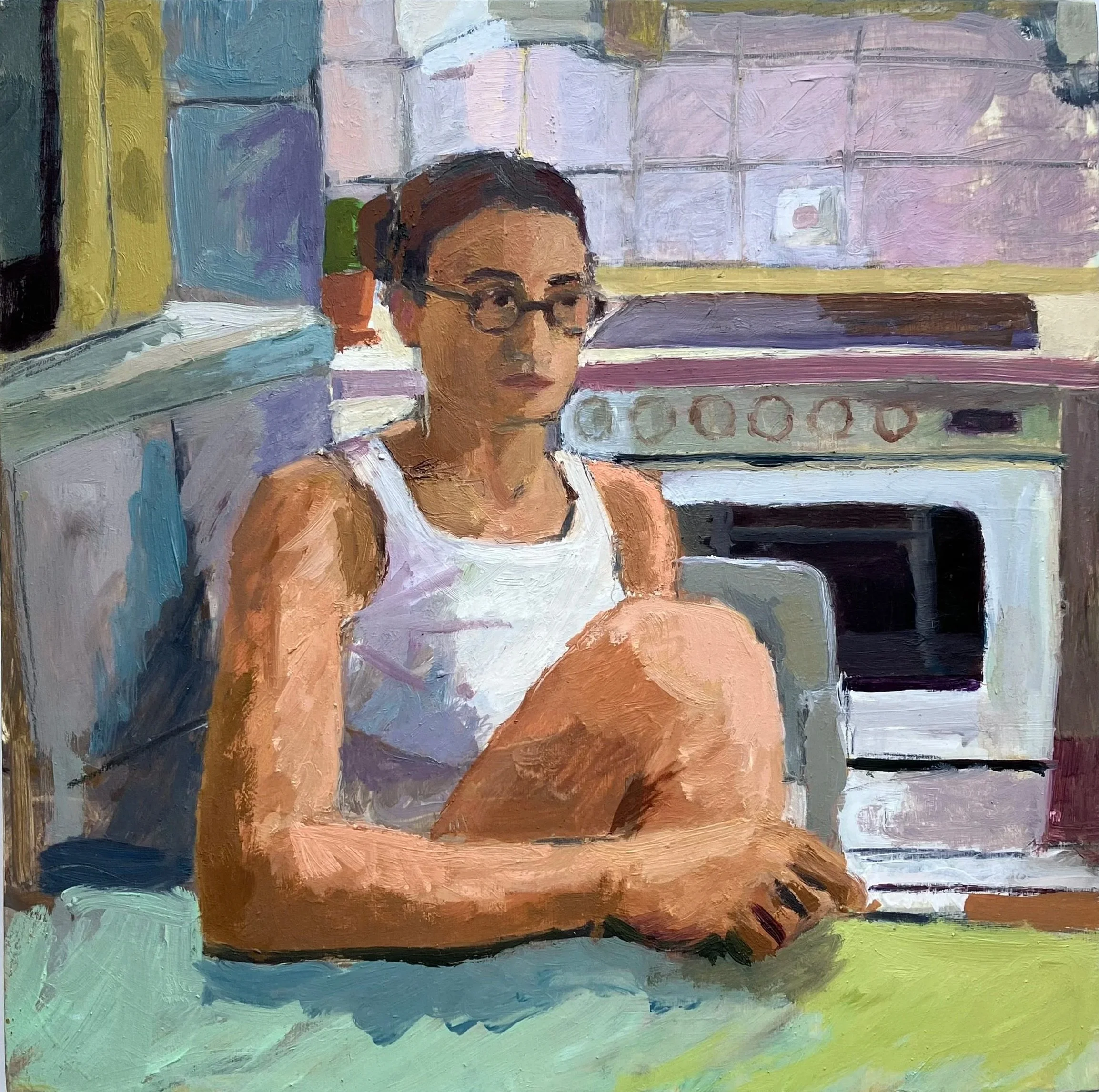 Self-portrait, oil on panel, 20x20 cm